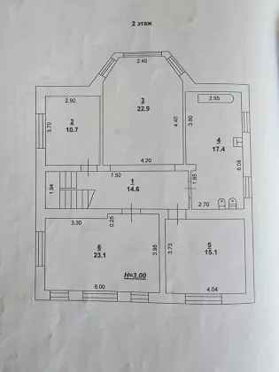 - 2 этаж: три жилые комнаты 23,1кв.м.; 15,1кв.м.; 10,7кв.м. вестибюль - 22,9 кв.м., совмещенный санузел - 17,4 кв.м. с ванной