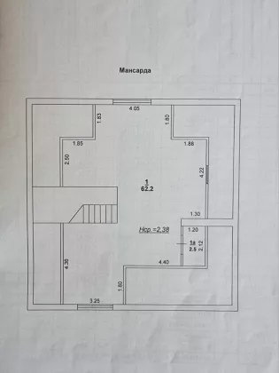- 3 этаж: мансарда - большой зал 62,2 кв.м., кладовая 2,5кв.м.