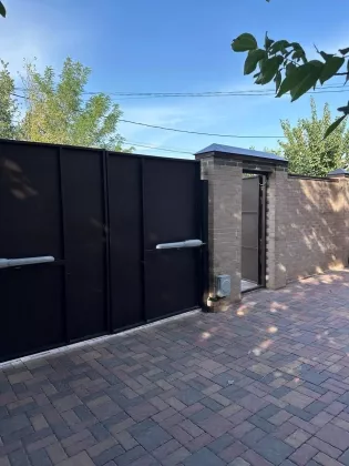 Двор: выложен тратуарной плиткой в трех цветах, система отливов продумана, забор кирпичный, ворота на автоматике.