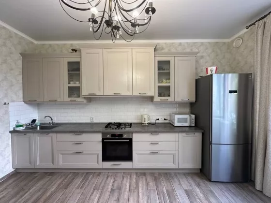 Ремонт новый: полы ламинат 33 класс, ступени лестницы из массива дуба, двери деревянные (массив), обои Италия.