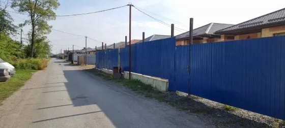 - Прямоугольный ровный участок огорожен забором из профильного листа, установлены ворота!