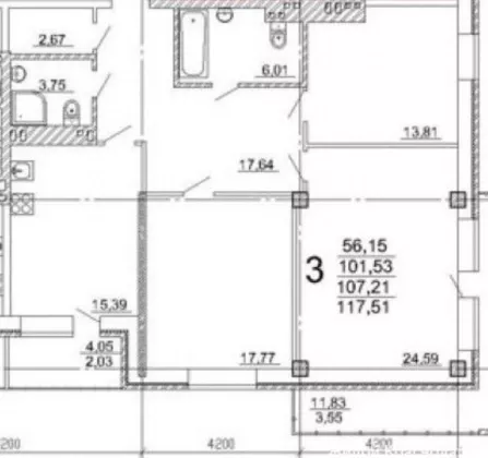 Продается 3-х комн. квартира, 117.51 кв.м., 3/10 эт